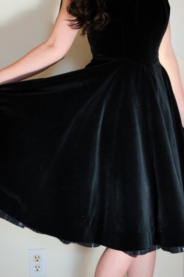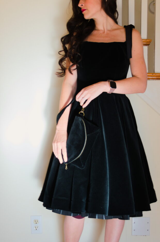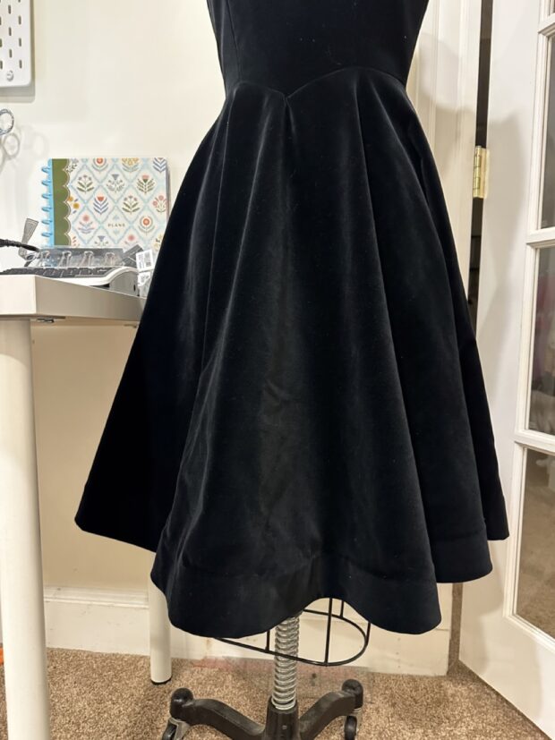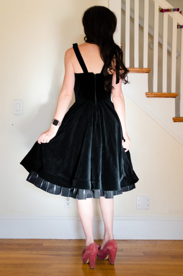For the skirt, I didn’t quite have enough fabric to do a full circle so it’s basically like 90% of a circle skirt. That meant my side seams were either going to be slightly forward or slightly backward. I decided to put them back more so you wouldn’t see the seams from the front.