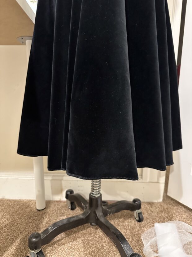And then I decided that the velvet looked a bit limp and sad so I added some interfacing to the hem and stitched horsehair braid all around.