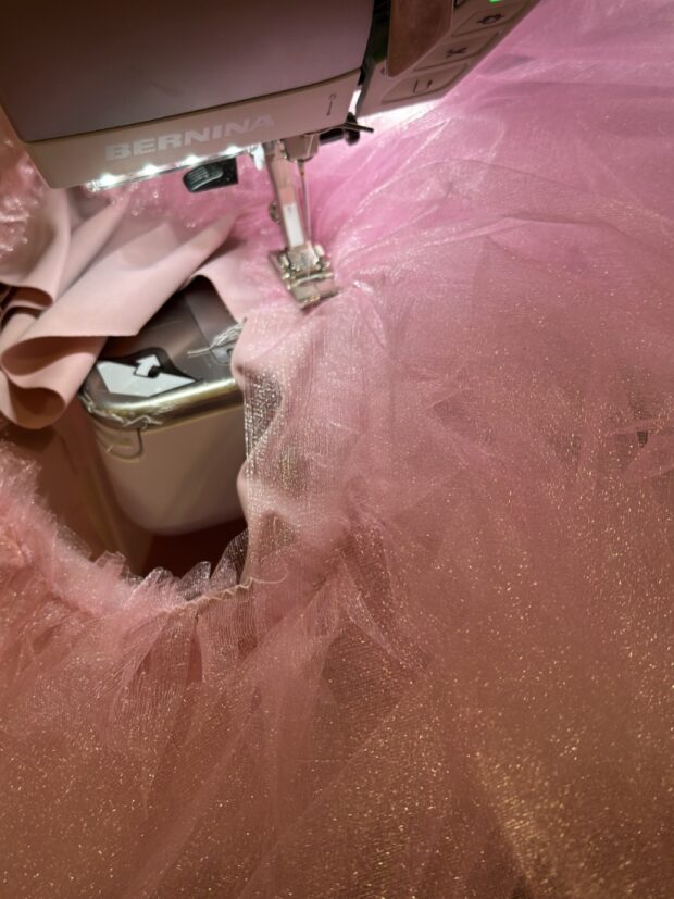 I started off by ordered about 200 yards of tulle from Amazon. It’s.. not the best so I’m not going to link it here. It’s not really even tulle? It’s like the inbred cousin of organza meets tulle and it’s almost glittery but not in the best way. Anyway it was fine. It came in a giant roll pre-cut to 16″ wide so that’s how long the skirts are. Then I ordered a bunch of spandex and stretch velvet for the leotards.