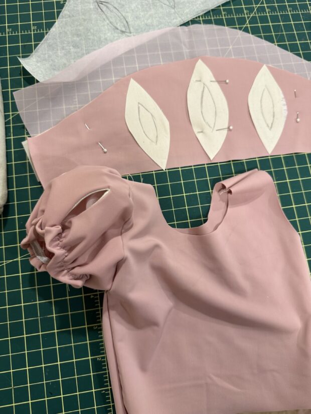 Ariel was a bit tricky, mostly because she went to bed and I realized I hadn’t checked sizing. Thank god it just barely fits her. I can’t get over how cute the sleeves turned out. To get the little vent thingies I just put a piece of interfacing (sticky side up) over where I wanted the vent, sewed a little oval shape, trimmed right up to the seam allowance, and then turned the whole thing to the back. Make sure to clip the corners and then just press it down and the sticky side will adhere to the back.